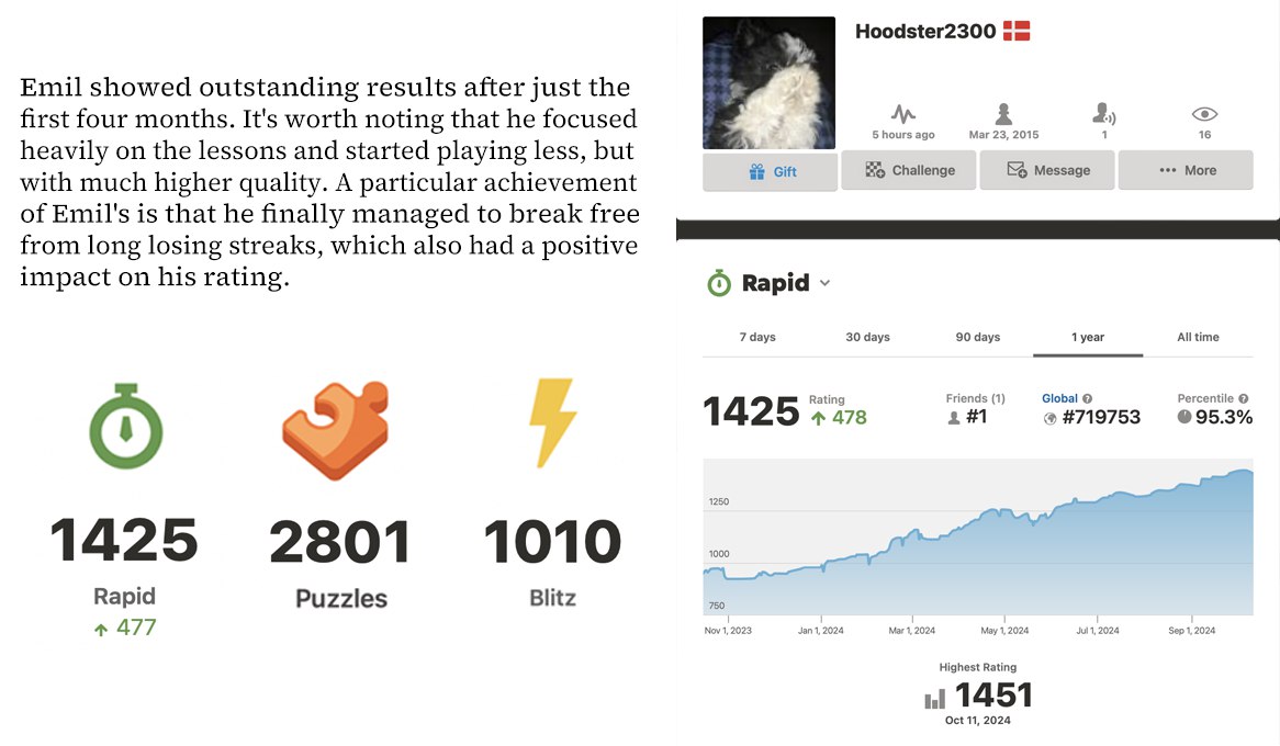 If I approve it, I’ll provide you with a personalized video lesson where I go over the mistakes and offer personal recommendations. If I notice that you haven’t quite understood the new opening or have made too many mistakes, I’ll point them out and ask you to keep working on that part of the plan.