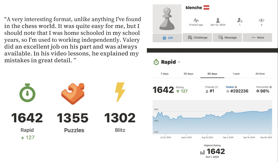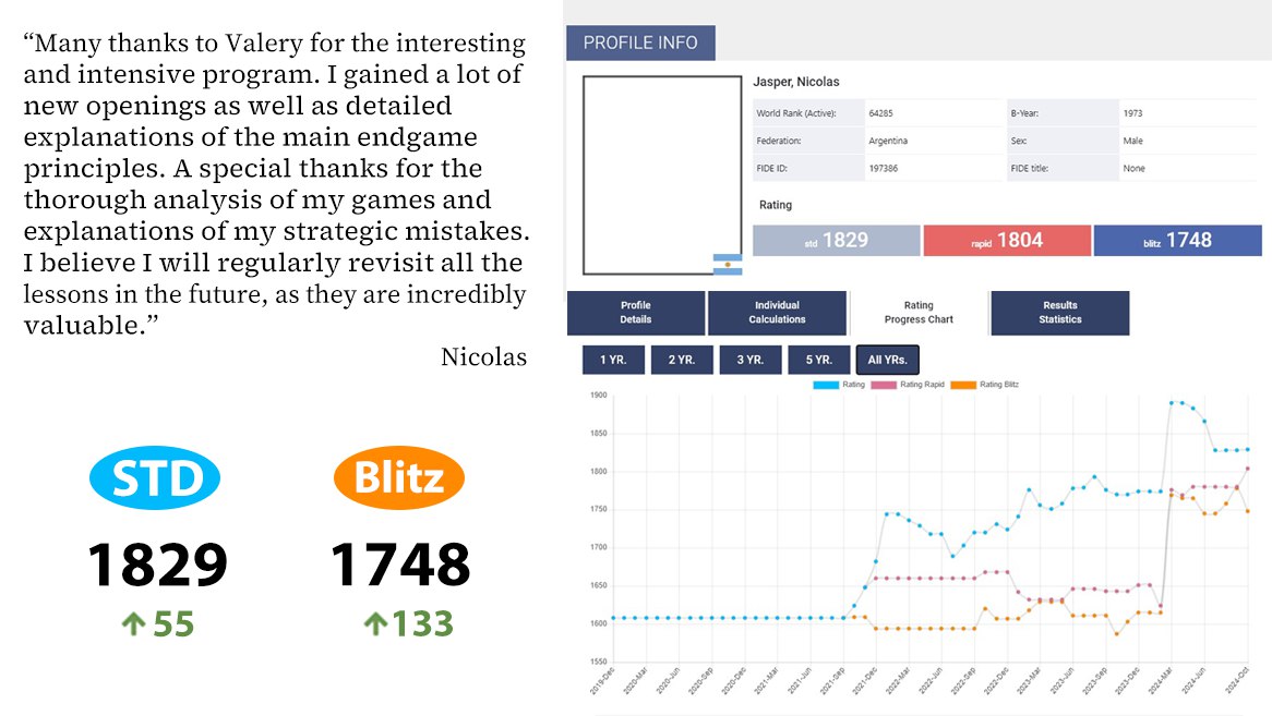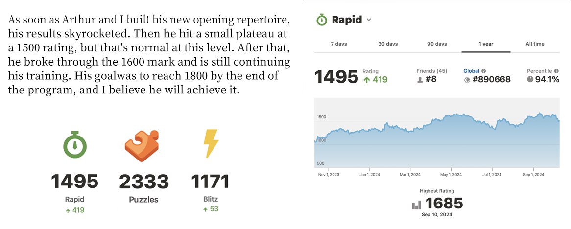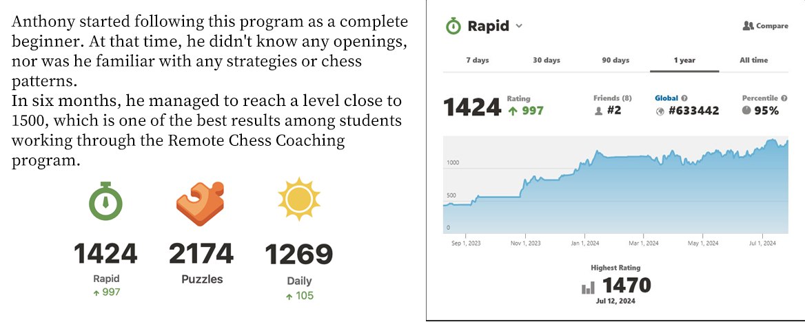 Before making a purchase, I advise you to contact me! This type of training may not be suitable for everyone, so I want to first learn about you and your goals, as well as take a look at your chess.com or FIDE profile.